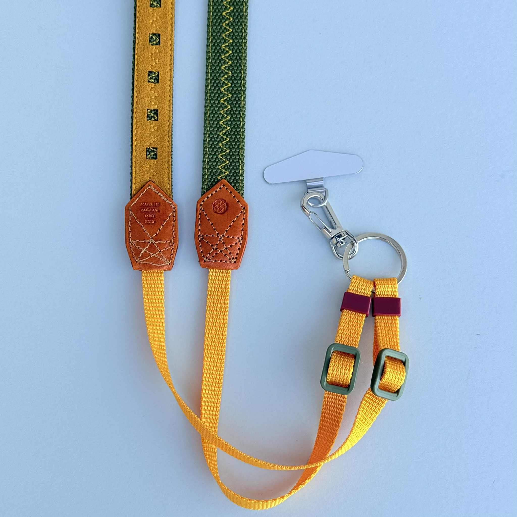 20mmカメラストラップ(スマホ金具つき)カーキ裏地カラシ