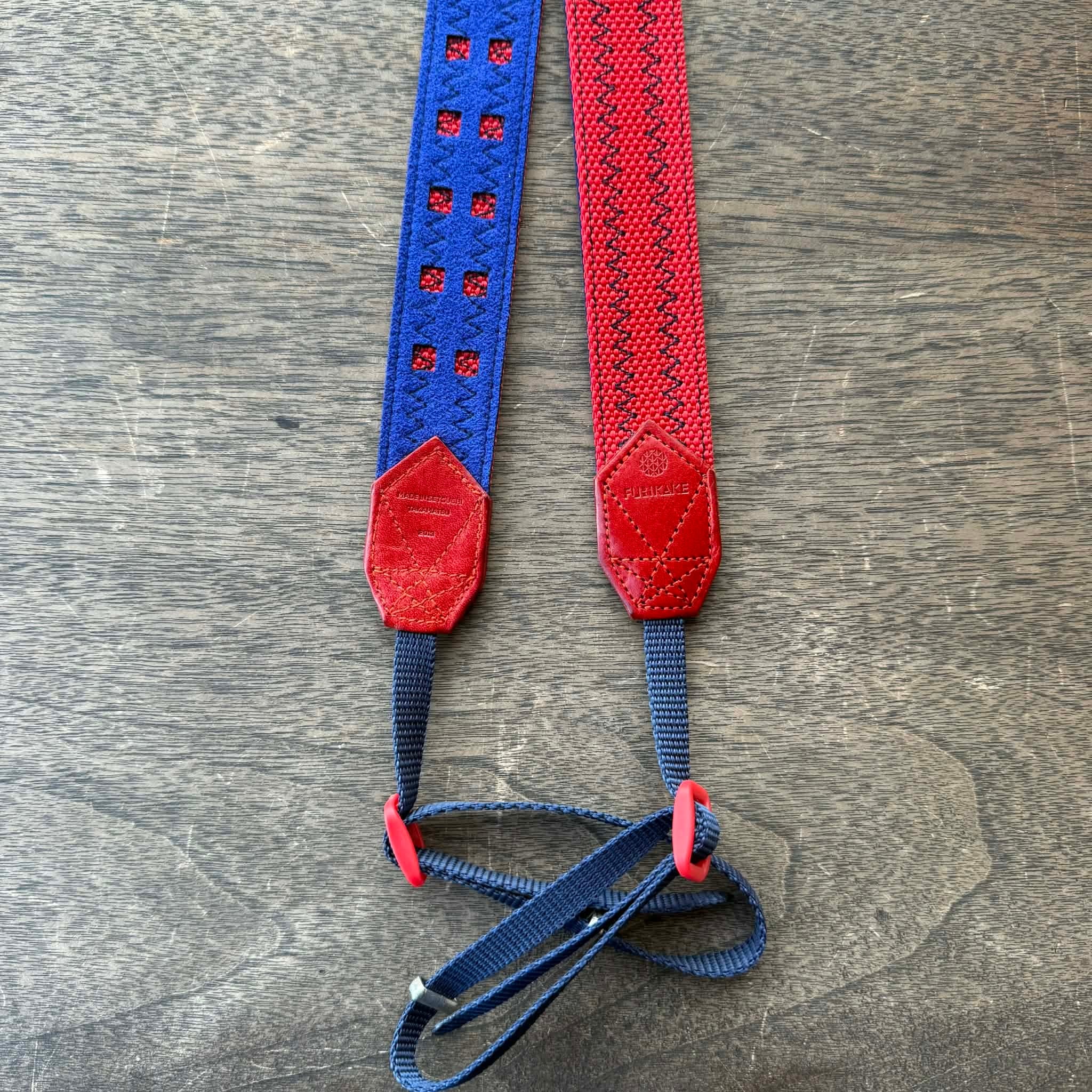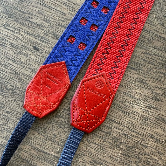 30mm幅カメラストラップレッド裏地ロイヤルブルー革セトウチレザー赤