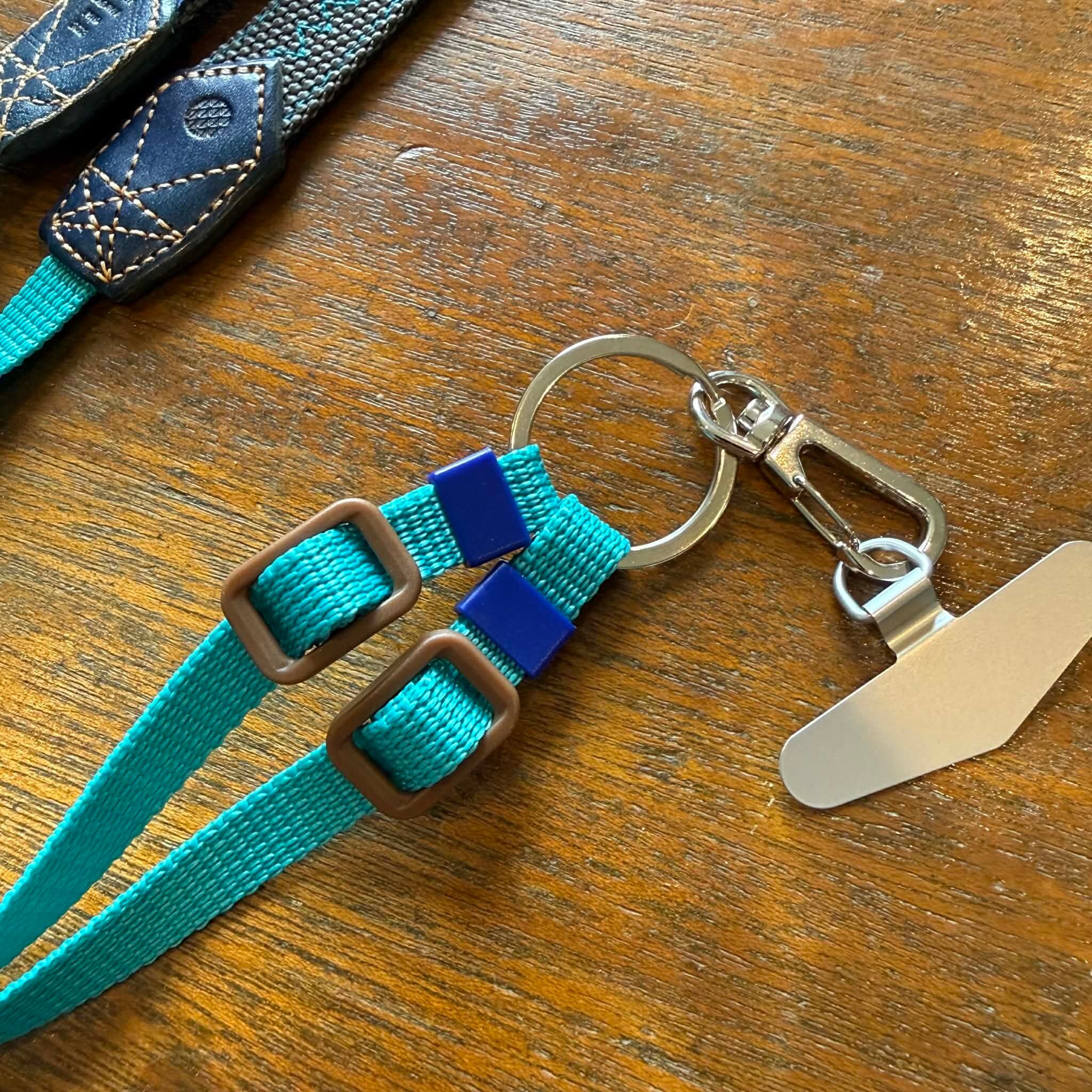 スマホやミラーレスカメラに最適な20mmの幅のしっかりしたストラップです。裏地は合成スエードです。