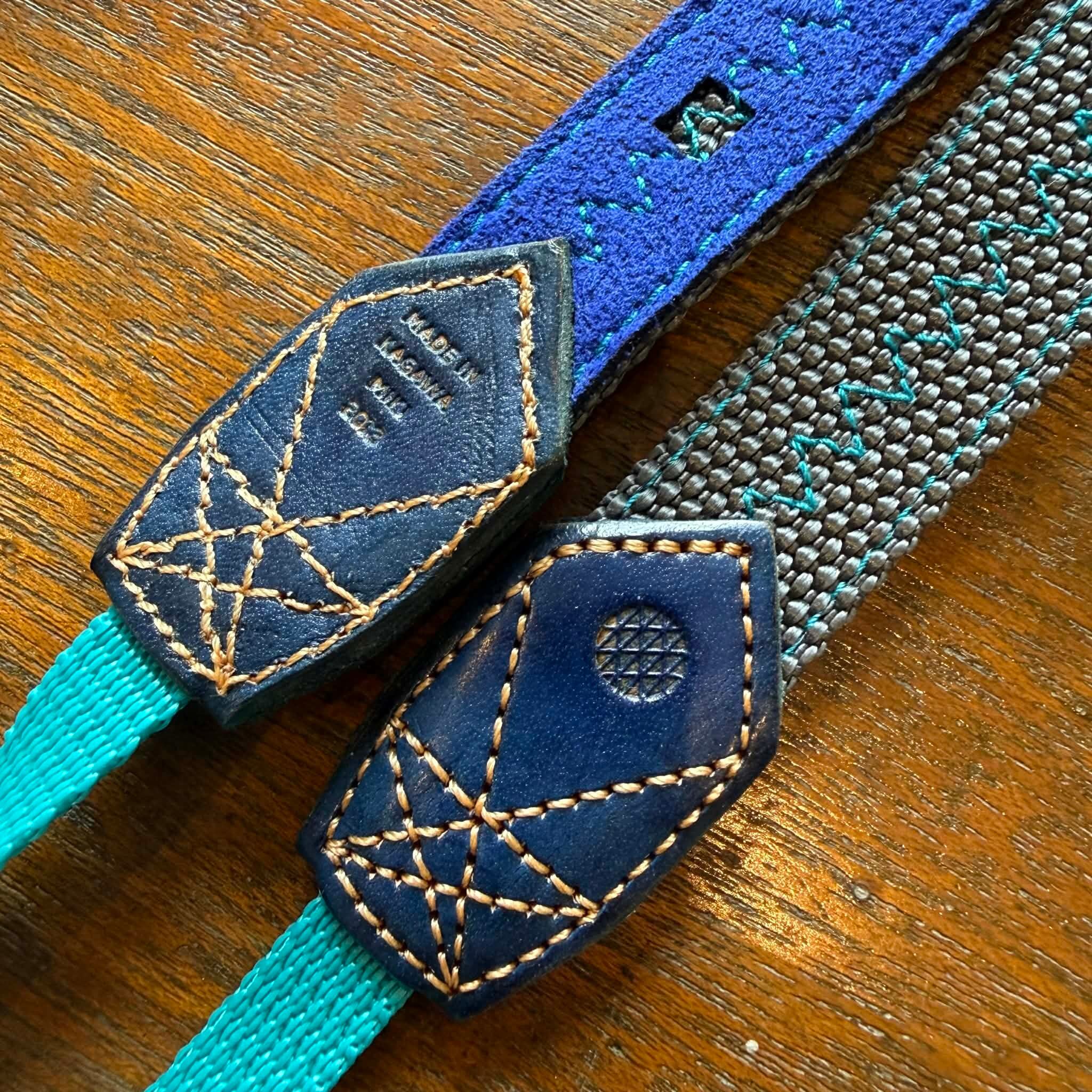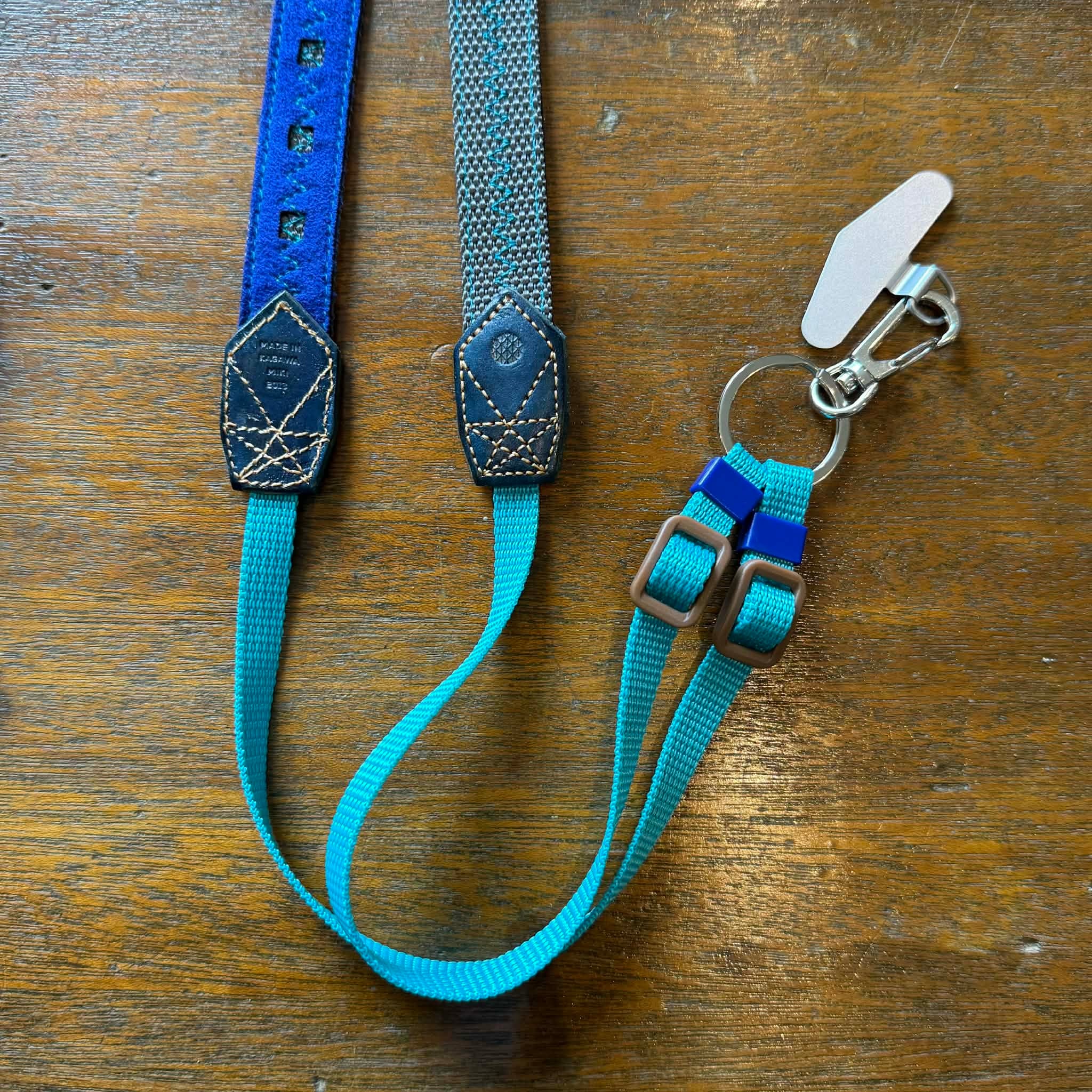 20mmカメラストラップ(スマホ金具つき)ガンメタ裏地ロイヤルブルー革セトウチレザー紺